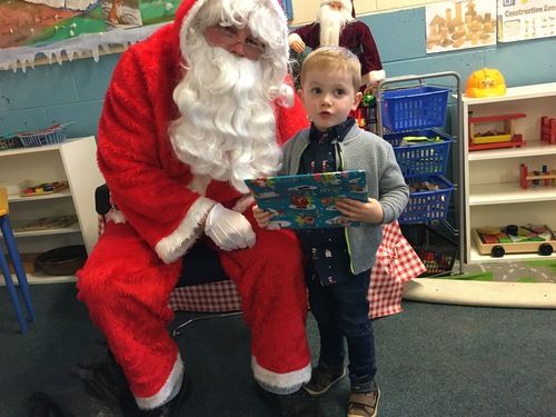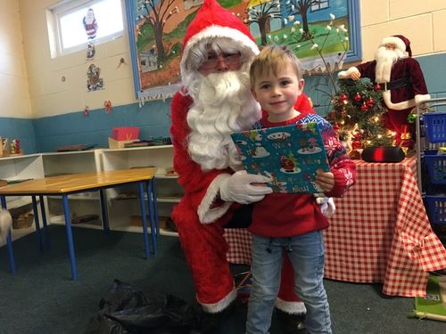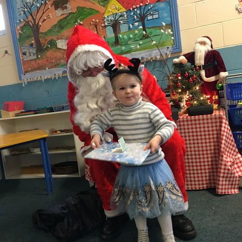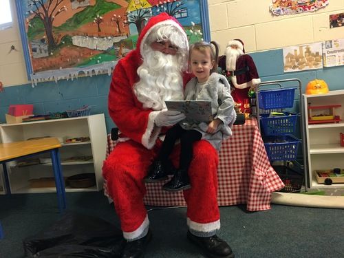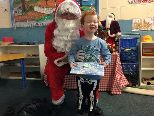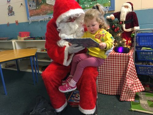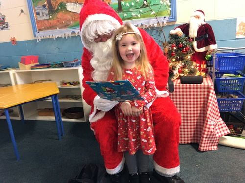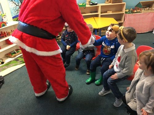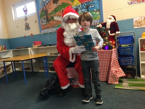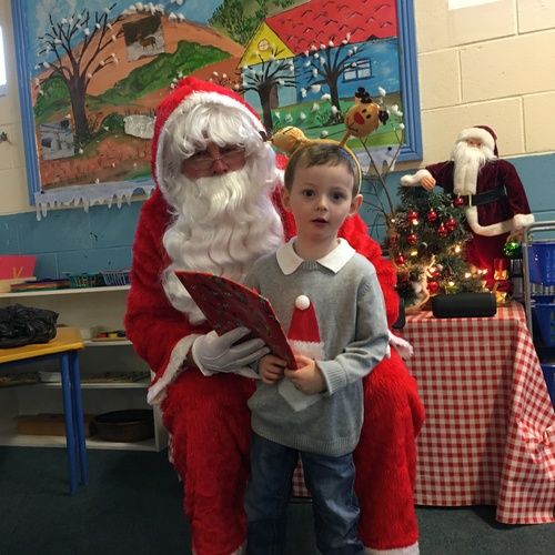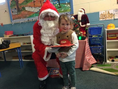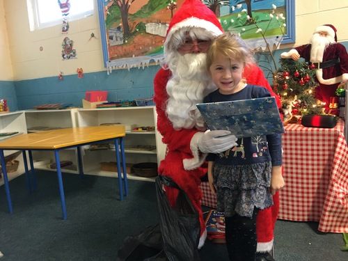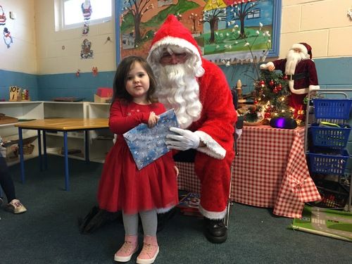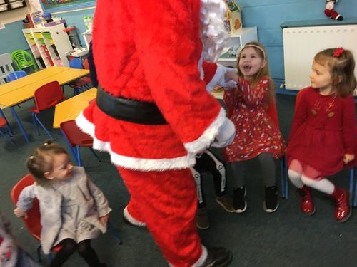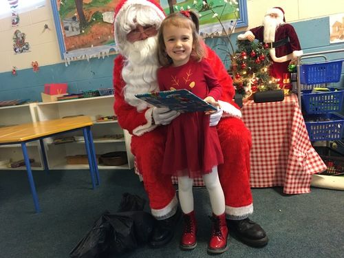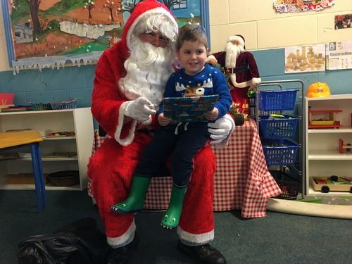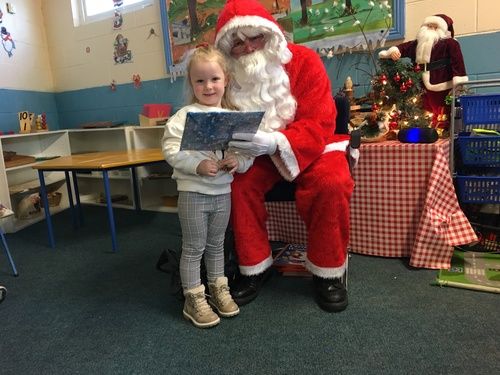 'Santa was very happy to see us. He thought our decorations were beautiful! He said not to leave too much mince pie in case he got stuck up the chimney. We gave him porridge with magic glitter for Rudolph, Santa said Rudolph loves porridge. He knew all our names and got our letters and said he would be back with our 'Special Presents Christmas Night.'