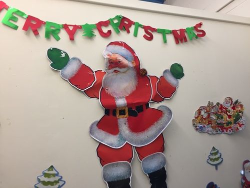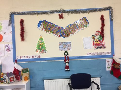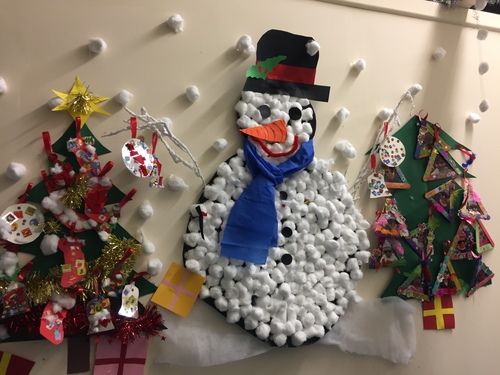 We had great fun, making pretend snow, and puting our Santa,Reindeer and funny Christmas stickers on !'