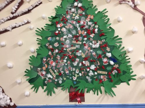 'Teacher gave us red tissue, cotton wool, and loads of Christmas stickers.