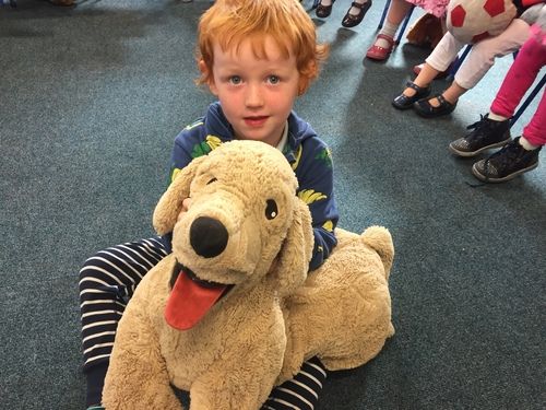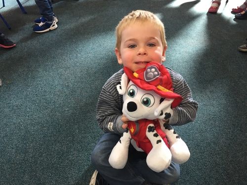 'My dog's name is called Marshall. He is in Paw Patrol, his friends are Rabble, Ryder, Sky, Chase.