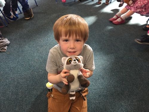 'My teddy is a racoon, he is called Bandit. He lives in the forest, he likes to eat branches. Amanda 'Does he have a job? ' 'Of course he has a job !!! He puts branches back up into the forest and spikes them into the ground, at the end of the week he gets lots of sticks. He has a brown tail and his nose is black!'