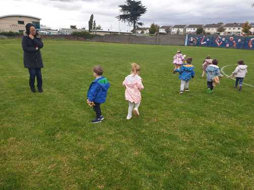 ‘Ouccy, he goes on the swing, and we push him, and he goes WEEE!! He eats sausages and carrots!'